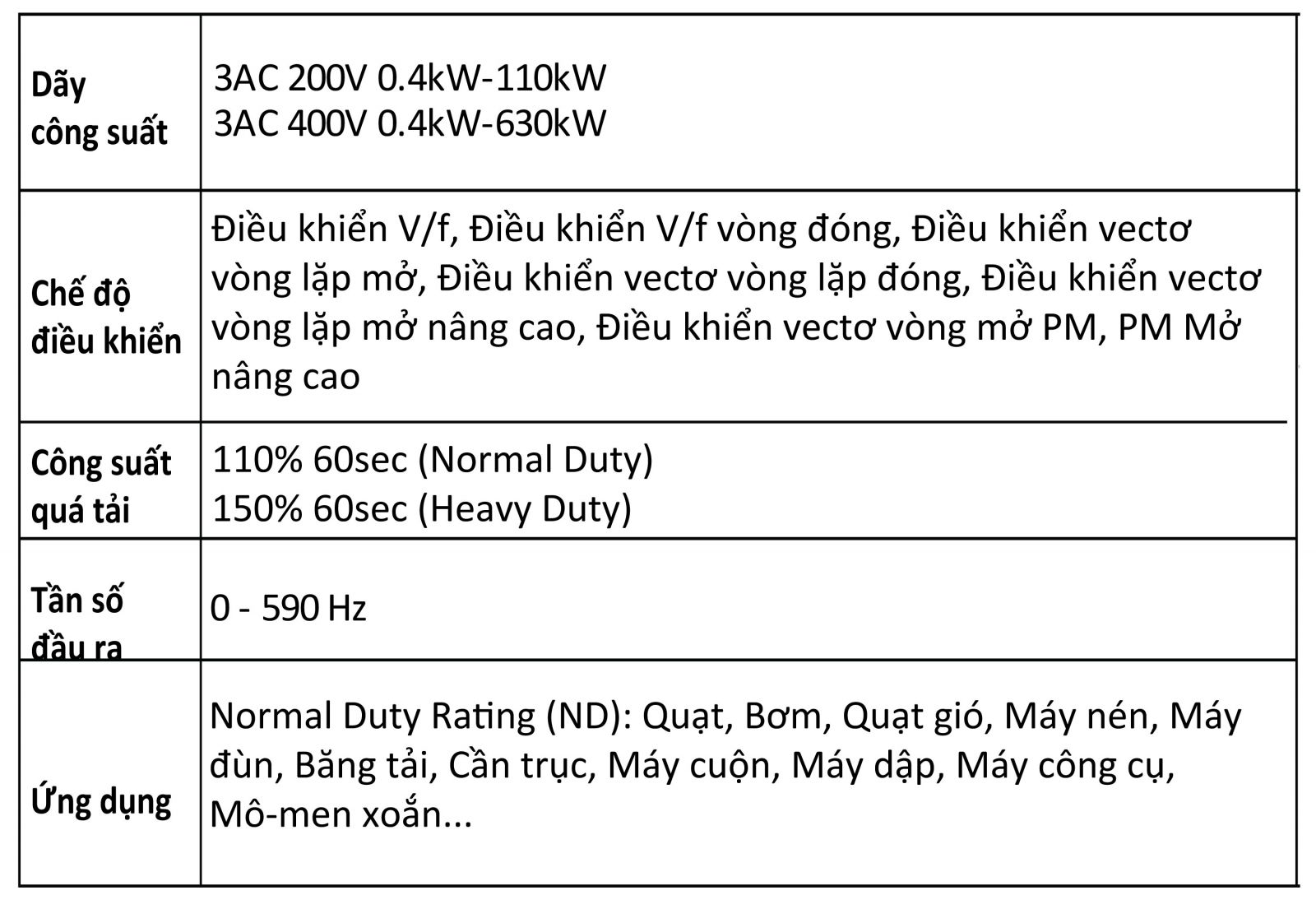 Ứng dụng lý tưởng cho các hệ thống tải nặng như: bơm, quạt, băng tải, máy nén khí, máy trộn...